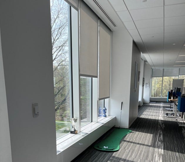 However, we can modify the social/cultural and physical environments to better align more of these different needs (physiological comfort, social/psychological comfort, organizational unity) with the nature and capabilities of the surrounding environments. Solutions to this could consist of varying combinations of a) the use of multiple shades of shorter width versus single shades covering large window sections or an entire wall (see shade photo below), b) an automatically controlled shade system with local manual override capabilities (though this too comes with its own set of issues), and c) implementing policy changes along with messaging (including signage) and education to manage expectations, reduce social uncertainties, and improve occupant use of the manual shades.