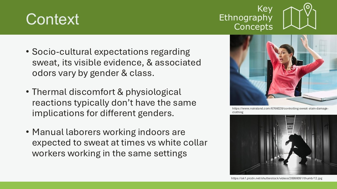 In our IEQ 2025 Conference paper, Why Thermal Comfort is Elusive: The Role of Socio-Cultural Factors, Stu Shell and I frame thermal comfort as a social construct, heavily influenced by the interaction of socio-cultural and technological factors (the interaction of the social and physical environments). Methods from the social sciences, like ethnography (discussed more at the end of this piece), can help us better account for socio-cultural influences equitably, resulting in design targets, sequences, interfaces, layouts, etc., that better reflect how comfort actually happens.