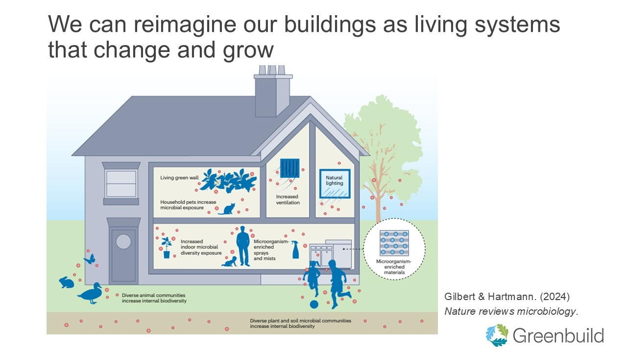 In another IEQ 2025 Conference paper I coauthored with Sarah Gudeman, Sarah Haines, and Stephanie Taylor, Connecting a Healthy Building Microbiome with Indoor Environmental Quality for a Sustainable Future (also presented at Greenbuild this year), we explored how the indoor microbiome shapes occupant health, resilience, and ongoing indoor environmental quality, focusing on everything from the impacts of ventilation and building materials on microbial communities to the role socio-cultural factors and inequities have in determining microbial exposures. And as we’re just beginning to integrate the indoor microbiome into broader IEQ research, practice, and standards (including moving towards a microbiome-based IEQ index), we have a chance to better integrate the social into this from the beginning. Some key aspects to consider include: