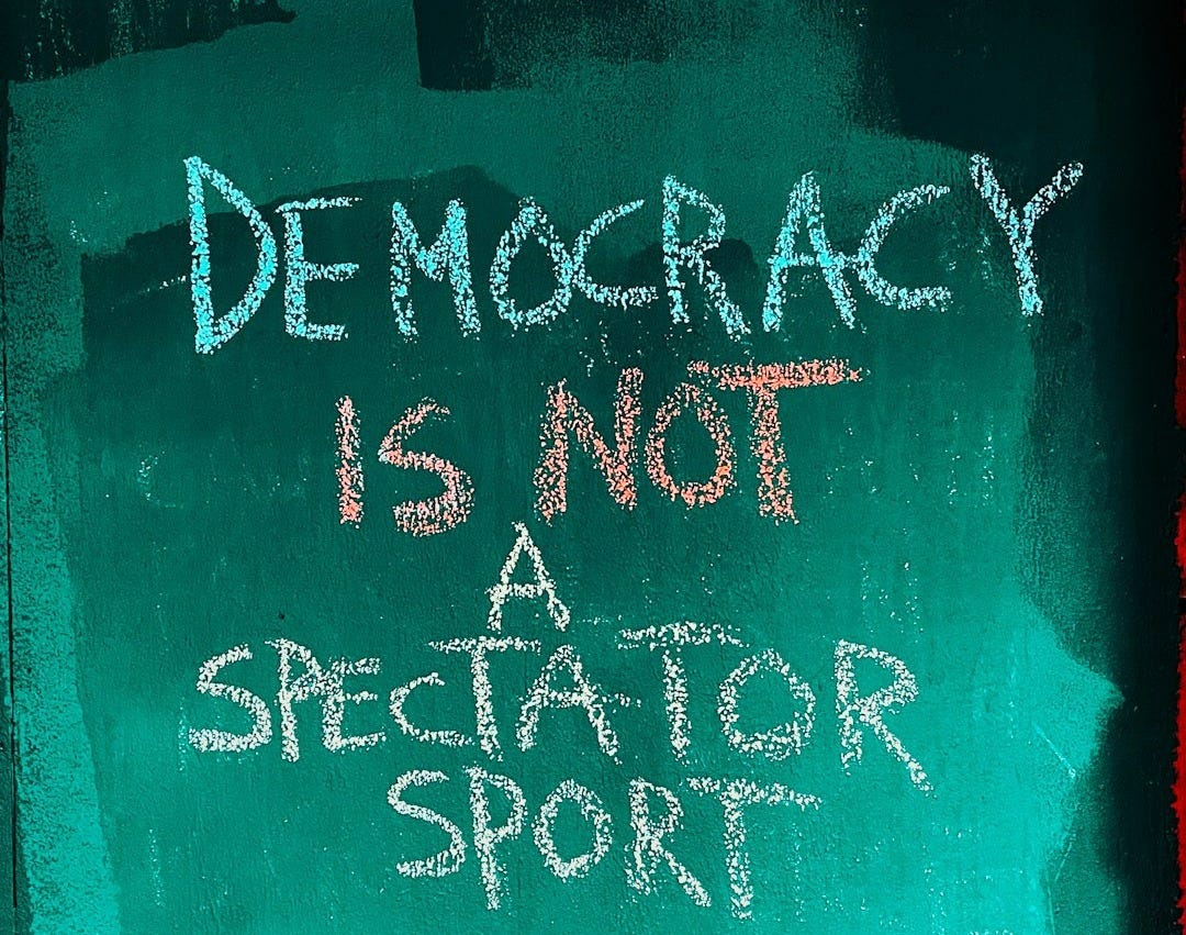 Powerful framing of "living for democracy" instead of just resisting. That distinction between access always being inequitable vs fighting for actual equity really reframes what defending democracy actually means. Been trying to figure out what my role should be in this, this piece helped clarify that its not just one big heroic act but alot of smaller choices.